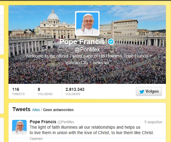 Dat zijn er in juli al meer dan 7,2 miljoen (onder alle talen wel te verstaan). De paus geeft tevens aflaten voor hen die hem op twitter volgen.