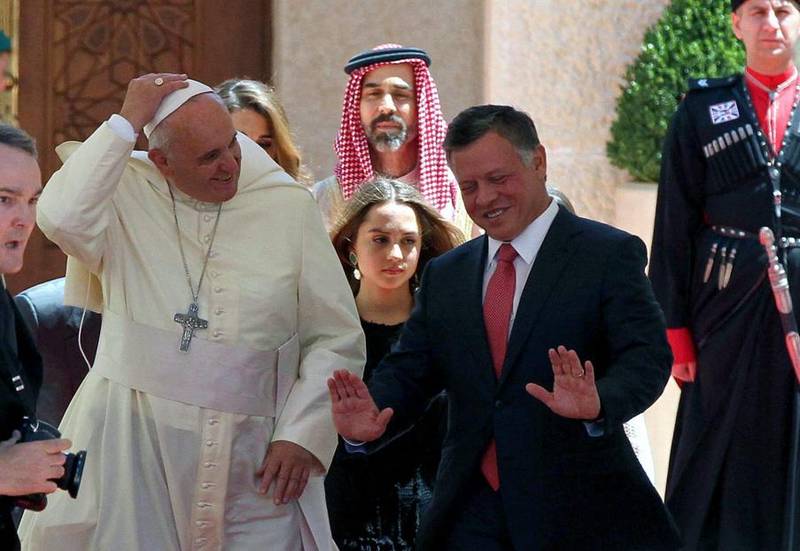 Niet veel later landde paus Franciscus in de hoofdstad Amman en hij sprak er met Koning Abdullah en hij zei dat hij veel waardering heeft voor de Moslimgemeenschap.