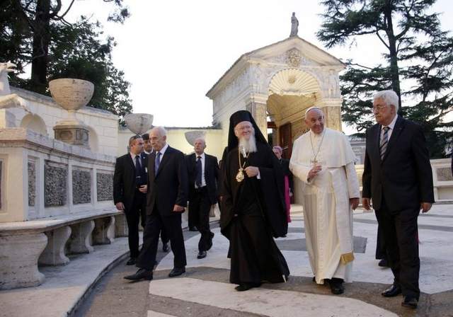 Abbas en Peres waren vergezeld van Joodse, Christelijke en Islamitische religieuze leiders. Tijdens de gebedsbijeenkomst werd gelezen en gezongen uit de Tanach, het Nieuw Testament en de Koran. Paus Franciscus las dan samen met Peres en Abbas religieuze verzen, welke de drie hadden geselecteerd voor de ceremonie. Ook de patriarch Bartholomew was van de partij. Achteraf plantten ze samen nog een olijfboom.