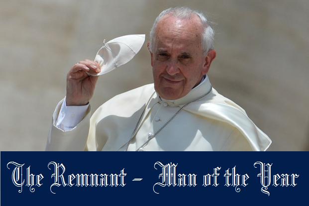Vanuit het traditioneel Katholiek standpunt van deze krant (The Remnant Newspaper), is paus Franciscus Man van het Jaar voor een heel andere reden: de gevolgen van zijn toenemend alarmerend pontificaat. Het “Francis effect” is eindelijk veel katholieken buiten de traditionele kringen aan het wakker schudden voor de lelijke realiteit van de post-conciliaire revolutie in de Kerk, en brengt hen recht in het zicht van een crisis die de ‘normalisten’ niet langer kunnen verbergen achter hun gewoonlijk verbloemende interpretaties van de gebeurtenissen.
