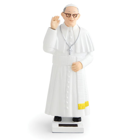 Een pop van Bergoglio die wuift en werkt op zonne-energie: