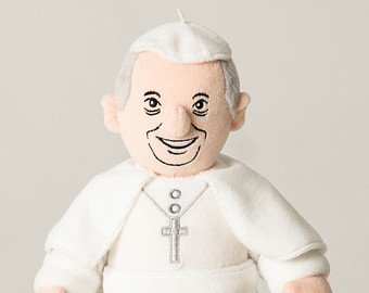De manier waarop massaal knuffels en poppen van Bergoglio worden gemaakt, en dit dan aan de kinderen wordt opgedrongen is misselijkmakend. Het is een sluwe manier om Bergoglio bij de kinderen ‘populair’ en ‘geliefd’ te doen maken. “Als de kinderen zot zijn van hem, wie zal dan tegen zijn?”, is waarschijnlijk de gedachte. Heel de cult die ontstaan is rond Bergoglio ruikt naar afgoderij. Vroeger werden nooit op zo’n grote schaal beelden en poppen van pausen gemaakt en al zeker geen knuffels! Maar met Bergoglio zijn de tijden veranderd… en het werd natuurlijk ook allemaal voorzegd.