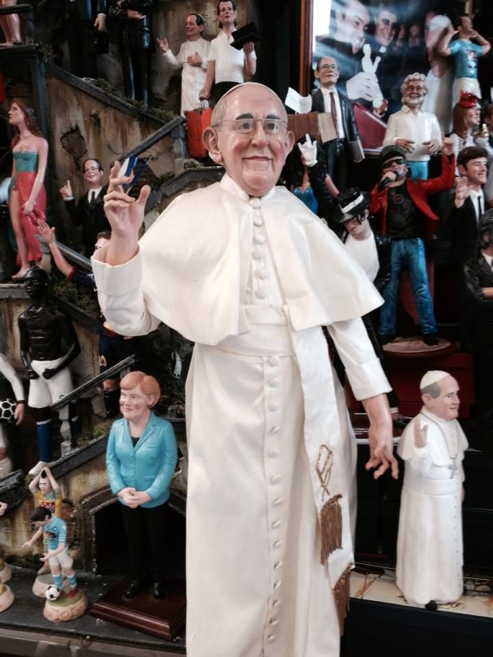 Reuzenpop van Bergoglio (eerder een beeld voor op de kast):