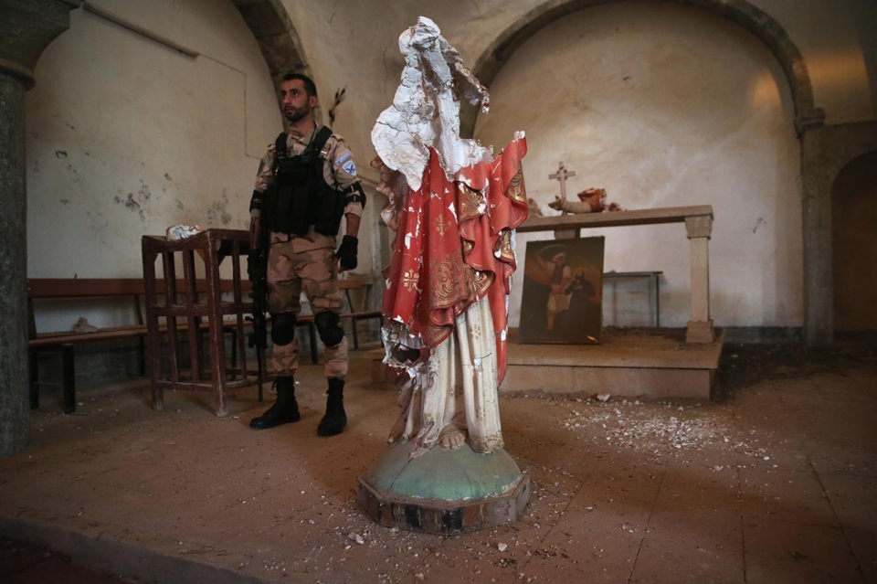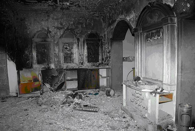 Hier worden de kerken van ons afgenomen (gesloten en herbestemd) omdat er geen kat nog naartoe gaat, daar omdat de terroristen van IS ze hebben vernield. Enkele indrukken van hoe de kerken in Irak er tegenwoordig bijliggen: