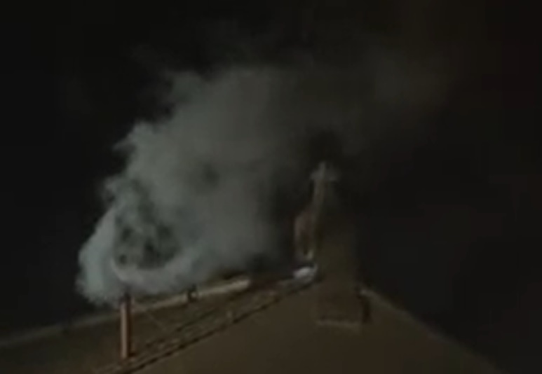 De “witte rook” op 13 maart 2013, toen Bergoglio was “verkozen”. Let op de verschillende demonische gezichten die erin verschenen. Hierbij kregen de woorden “de rook van Satan is het Vaticaan binnengedrongen” een speciale bijklank.