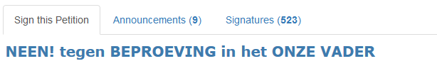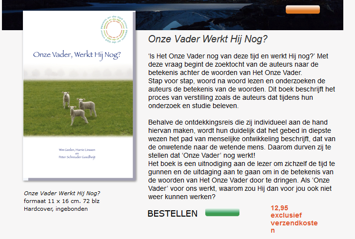 De nieuwe Nederlands-Vlaamse versie van het Onze Vader stuit op nogal wat verzet volgens de media. De Vlaamse Magda De Ley is zelfs een petitie gestart met als doel alle gelovigen op te roepen niet mee te bidden met deze gewijzigde versie van het Onze Vader. Daar wilden wij, de auteurs Wim Geelen, Harrie Linssen en Peter Schreuder Goedheijt, van het boekje: Onze Vader, Werkt Hij Nog?, meer over weten. Al snel kwamen wij er achter dat het verzet niet gericht was tegen het in elkaar voegen van de Nederlandse en Vlaamse versie van Het Onze Vader zelf, maar heel specifiek tegen de verandering van een bepaalde zin uit het gebed.