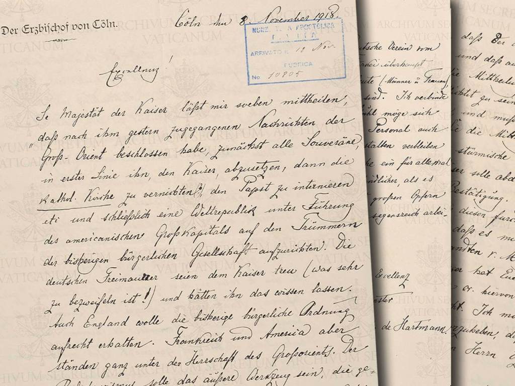 Het document dat Dr. Hasemann vond in de Vaticaanse Archieven van de Apostolische Nuntiatuur van München, is een handgeschreven brief van 8 november 1918 door Kardinaal Felix von Hartmann, Aartsbisschop van Keulen, en gericht aan de Apostolische Nuntius van Duitsland, Aartsbisschop Eugenio Pacelli (die later Paus Pius XII zou worden). In die brief, informeerde Kardinaal von Hartmann Aartsbisschop Pacelli over informatie die hij had ontvangen van Keizer Wilhelm II, die hij op zijn beurt net had ontvangen en wilde doorgeven aan de paus. Enkele uittreksels: