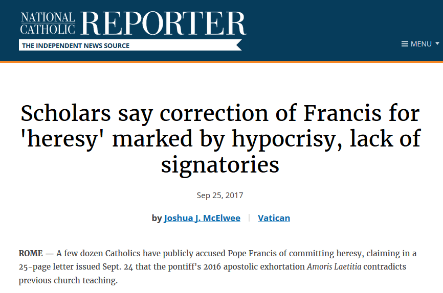 Ook ‘The National Catholic Reporter’ berichtte dat aan deze brief niet veel aandacht mag gegeven worden, omdat ze ondertekend werd door “marginale, onbekende figuren” die niet veel status hebben. Modernistische professoren zeggen dat de brief hypocriet is en dat ze te weinig handtekeningen heeft.