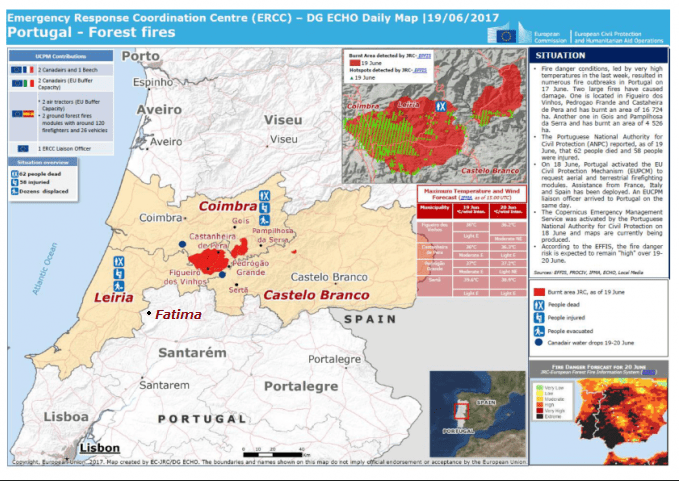 Momenteel zijn er zeer zware bosbranden in delen van Spanje en Portugal, alsook in Californië, waar ze de stempel “de dodelijkste bosbranden in de geschiedenis van de staat” meekregen. In Portugal zijn drie dagen nationale rouw uitgeroepen voor de slachtoffers van de bosbranden. In juni waren er ook al zware bosbranden, één van de zwaarste in de geschiedenis van Portugal, waarbij toen meer dan 60 mensen stierven – vaak werden ze levend verbrand terwijl ze vluchtten in hun wagen. Opvallend was dat deze zware branden gebeurden ongeveer in het midden tussen Coïmbra, waar zr. Lucia Dos Santos zo lang in het klooster heeft verbleven en Fatima, waar de verschijningen gebeurden.
