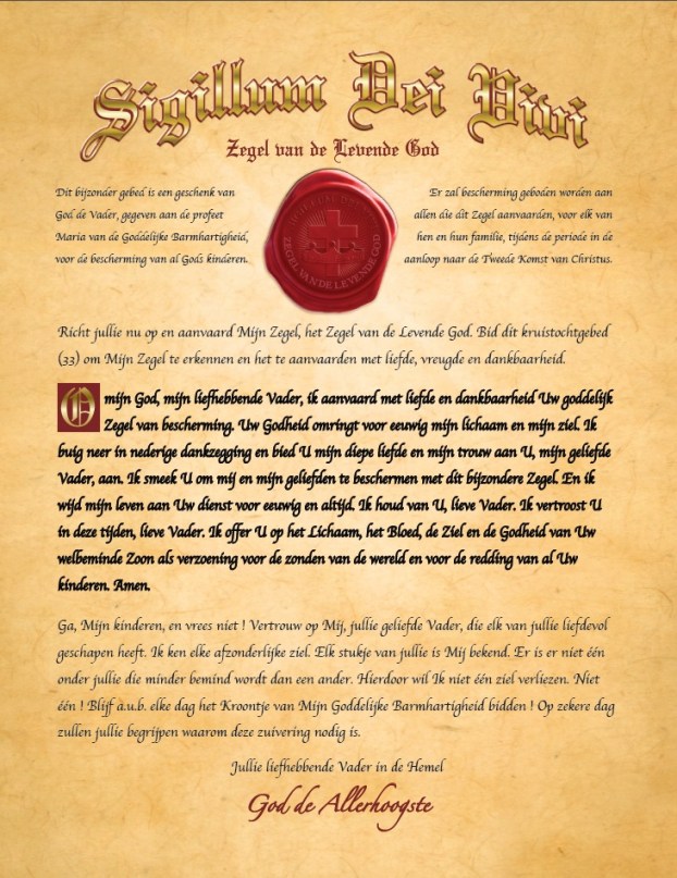 Laten we daarom met nog grotere vurigheid en volharding de Rozenkrans, het Kroontje van de Barmhartigheid en de Kruistochtgebeden bidden! We mogen de moed niet verliezen, hoe slecht het nu ook gaat. Eerst komt de Waarschuwing. Tenslotte zal de Heer ingrijpen en de wereld kastijden als deze zich niet bekeert na de Waarschuwing, net om te verhinderen dat dit zich zou manifesteren. Bidt ook Kruistochtgebed 33 voor het Zegel van Bescherming.