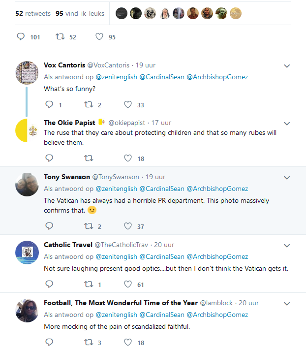 “Niet zo zeker of lachen een goed beeld geeft.. maar dan denk ik niet dat het Vaticaan het snapt.”