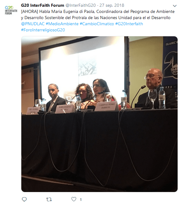 Bergoglio was zelf niet aanwezig op het forum, maar stuurde een boodschap waarin hij zei dat deze “intergeloofsconferenties, binnen het raamwerk van de G20 bijeenkomsten, ernaar streven om de internationale gemeenschap de bijdrage van hun verschillende religieuze en filosofische tradities en ervaringen te bieden, om de sociale problemen te markeren die ons vandaag bezighouden…” Hij onderstreepte het belang van constructieve dialoog, maar zei er meteen bij dat dit niet hoeft te betekenen dat men z’n identiteit afzweert, maar men moet bereid zijn “om naar buiten te gaan om de ander te ontmoeten, om hun redenen te begrijpen,… en het is bovenal een gelegenheid voor wederzijdse verrijking en broederlijke groei, want,” zo zei Bergoglio, “het is niet mogelijk om een gezamenlijk huis (een ene-wereldkerk?) te creëren, terwijl men mensen aan de kant laat staan die anders denken.”