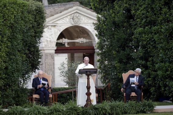 Bergoglio hield op 8 juni 2014 een gebedsbijeenkomst met de presidenten van Israël en Palestina, om te bidden voor de vrede. Voor het eerst in de geschiedenis werden Koranverzen gezongen in het Vaticaan, en dit op persoonlijke uitnodiging van Bergoglio. De islamitische geestelijke besloot zijn gebed met de woorden: