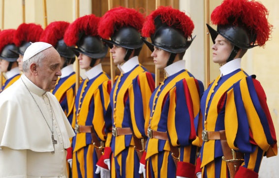 Op zaterdag 4 mei vertelde Bergoglio tegen de elitekrachten van de Zwitserse Garde, die als zijn lijfwachten fungeren, dat het leven in de barakken hen zou voorbereiden op het leven in een bredere, snel veranderende samenleving. “Bovenal hebben jullie de gelegenheid om gezonde vriendschappen te creëren en jullie zelf te trainen om de bijzonderheden en de ideeën van anderen te respecteren, om in de ander een broeder en een metgezel te leren herkennen, met wie jullie sereen een stuk van de weg bewandelen.”
