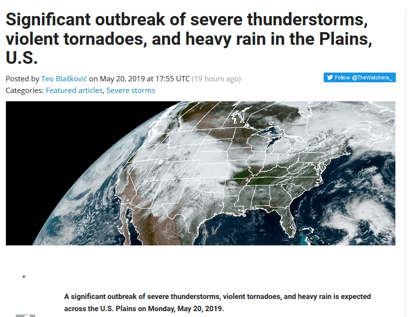 Daarenboven lijkt het slechte weer in het midden van de VS maar niet op te houden. In het begin van 2019 werd dit deel van het land (waar de meeste graan- en sojateelt plaatsvindt) geteisterd door bittere koude en enorme sneeuwstormen. Velen hoopten op beter weer tegen de lente. In maart begonnen de overstromingen door de vele regenval, en het is sindsdien niet meer gestopt. Het is reeds de langste overstroming langs de Mississipi sinds de Grote Overstroming van 1927, en er lijkt geen einde in zicht. Ondertussen blijven zware onweders, met daarbij vaak tornado’s de regio teisteren. Afgelopen weekend troffen zware stormen weer deze streken, en deze week wordt nog meer ellende verwacht. Het is intussen bekend dat de continentale Verenigde Staten net hun natste 12 maanden beleefden sinds de metingen begonnen. De Mississipi is al drie maanden lang aan het overstromen, en in sommige regio’s nog langer.