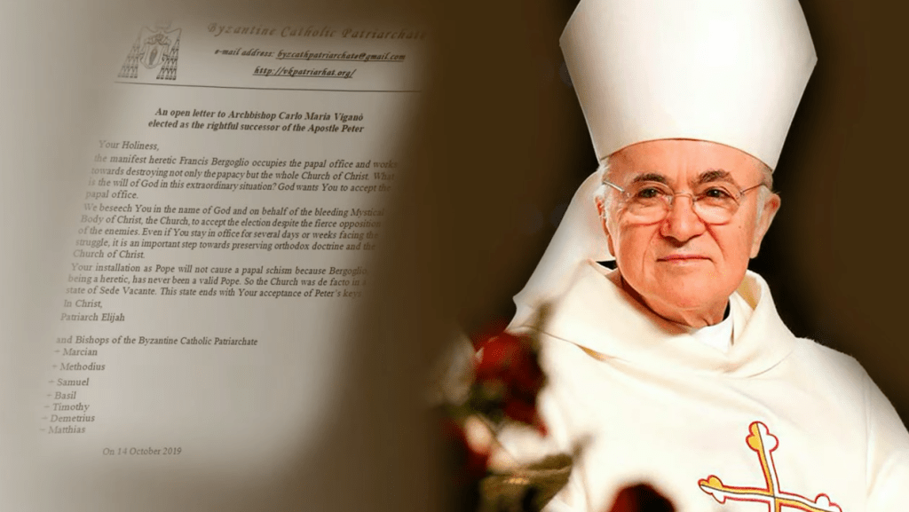 In de videoboodschap verklaren de patriarch en de bisschoppen dat Bergoglio meerdere malen een banvloek heeft opgelopen, en dat hij een duidelijk zichtbare ketter is, en dat hij nooit geldig paus geweest is. Ze zijn deze situatie moe, en hebben in een bijzondere synode Mgr. Viganò tot Paus uitgeroepen. Deze daad, hoewel met goede bedoelingen, is uiteraard schismatiek en biedt geen oplossing.