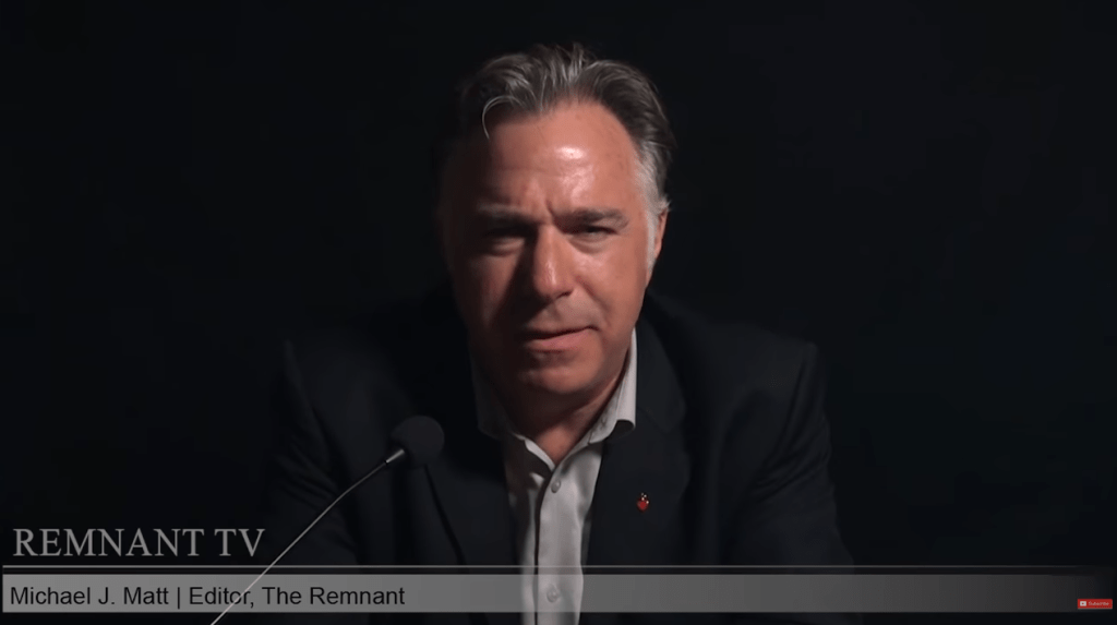 Michael Matt van The Remnant is Bergoglio zo beu, dat hij een open brief aan hem heeft geschreven. We geven hieronder integraal de open brief weer, ondanks onze meningsverschillen over Bergoglio. Matt smeekt namelijk dat Bergoglio zich weer zou gedragen als de Heilige Vader, maar als Benedictus nog steeds de Paus is, en Bergoglio een staatsgreep is, dan is dat uiteraard onmogelijk. Maar hoe dan ook, het belangrijkste is dat men hem weerstaat, en dat is wat Matt zegt en doet.