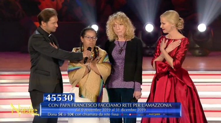 En het is nog niet gedaan. Tijdens het Vaticaanse Kerstconcert, ten voordele van o.a. Scholas Occurentes (dat de modernistische en globalistische agenda nastreeft), werd door een sjamaan een soort “catechese” gegeven rond Pachamama. De aanwezigen moesten hun armen op de borst kruisen om aldus de sterke vibratie van “het hart van moeder aarde” te voelen. De Zuid-Amerikaanse ‘inheemse’ vrouw sprak over de “geest” die ons toelaat de “boodschap van moeder aarde” te horen, en dat voor hen “moeder aarde, Hicha Guaia, alles is,” omdat ze hen “voedsel, heilig water, medicinale planten” geeft, en daarom ontvangt zij offers zoals “de placenta, en het eerste haar van de man die wordt afgesneden.”