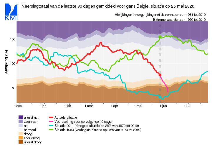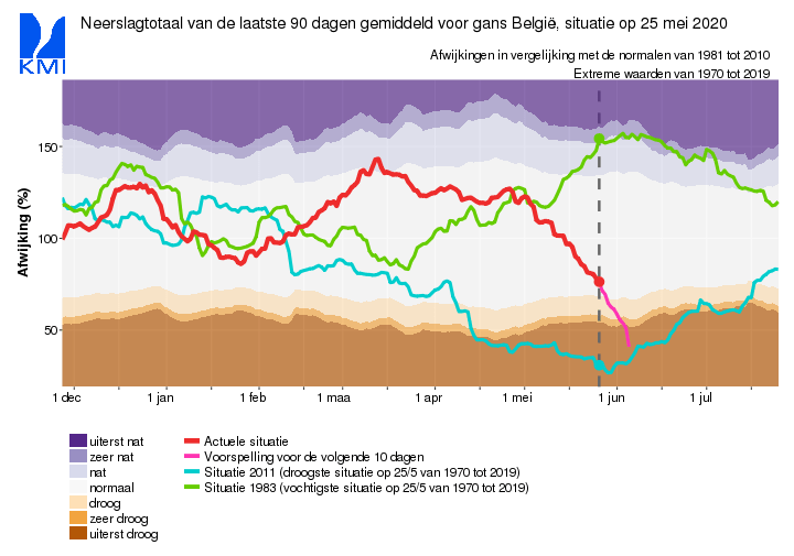 Zowel in Nederland als in België (en wellicht in andere delen van Europa ook) is de toestand reeds dramatisch. In Nederland is het neerslagtekort nu reeds groter dan het droogste jaar ooit sinds de metingen, d.i. 1976.