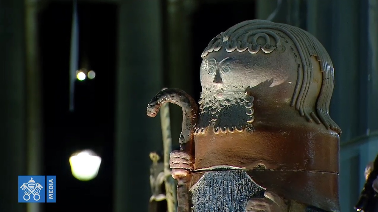Prachtig! Doet me denken aan volkskunstkerststallen uit Zuid-Amerika, maar ook aan Russische Baboesjka’s. De kunstenaar is er dus in geslaagd een beeldengroep te maken met een universele uitstraling. Veel beter dan de zoetige onhistorische beelden van witte mensen. Dit past bij een universele kerk.