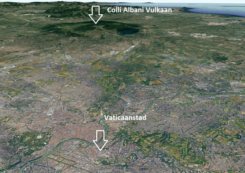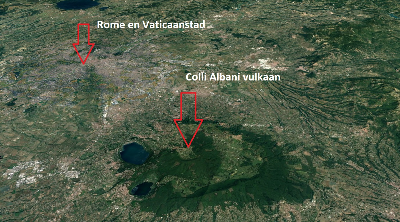 De vernietiging van Rome zal dus gebeuren vrij kort vóór Oordeelsdag. Hoe Rome zal vernietigd worden, weten wij niet. Maar het is toch interessant om op te merken dat Rome vlakbij een enorme vulkaan ligt: de Colli Albani. Dit gebied is bij ons bekend onder de ‘Albaanse Heuvels’. Dit is eigenlijk de caldera van een enorme vulkaan, met zeker drie kraters waarvan twee kratermeren. Tot voor kort dacht men dat deze vulkaan uitgedoofd was. Maar niets is minder waar.