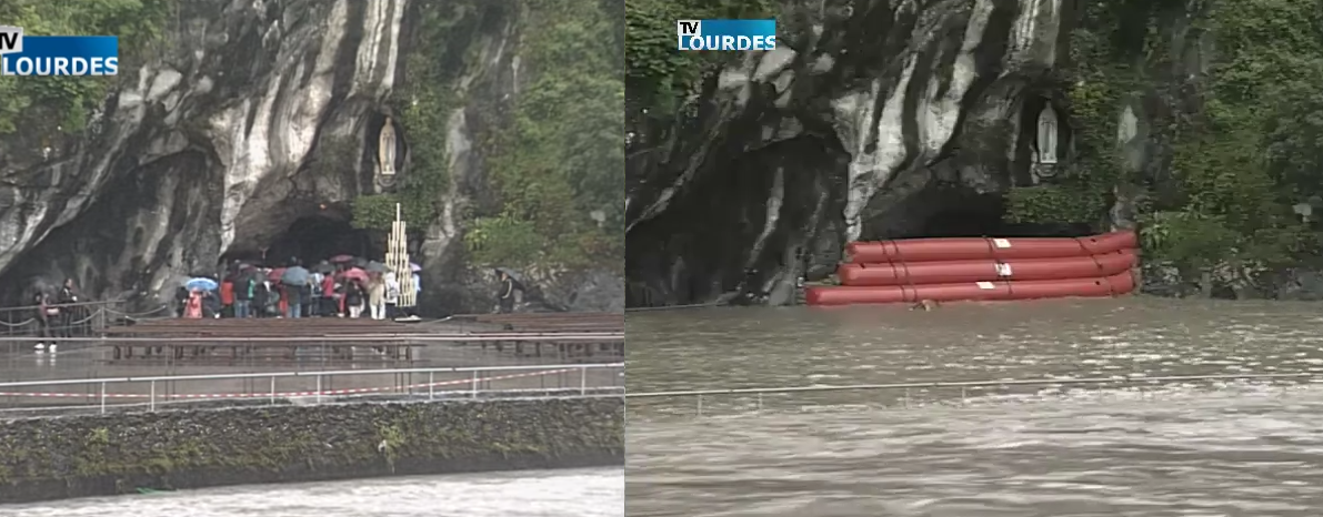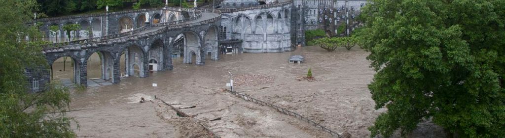Lourdes werd ook al meermalen door rampen getroffen. De zwaarste ramp vond plaats in juni 2013, toen het peil van de Gave sterk steeg door hevige regenval, en Lourdes overstroomde. De ravage in het heiligdom was totaal. Ook vele souvenierwinkels en hotels hadden het zwaar te verduren.