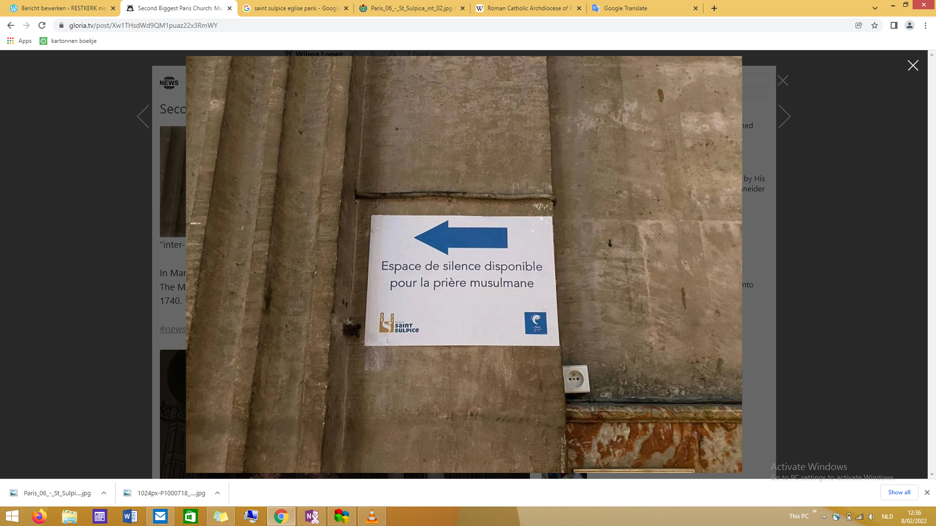 In het kader van Bergoglio’s Abu-Dhabi document uit 2019, waarin staat dat “alle religies door God gewild” zijn, heeft de tweede grootste kerk van Parijs, de Eglise Saint-Sulpice, die ietsje kleiner is dan de Notre Dame kathedraal, een “stille ruimte” ingericht waar Moslims hun koranverzen mogen komen bidden.