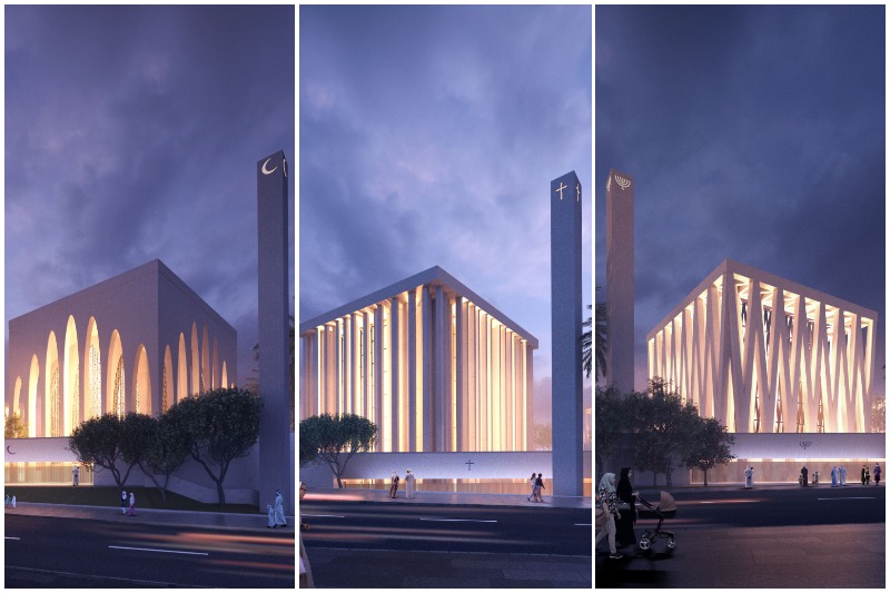 Gisteren was er reeds een inhuldiging van de synagoge. Op 1 maart zal ook de kerk en de moskee geopend worden. De gebouwen zien er vrij sober en strak uit, en lijken heel erg op elkaar. Ze werden ontworpen door de architect Sir David Adjaye.