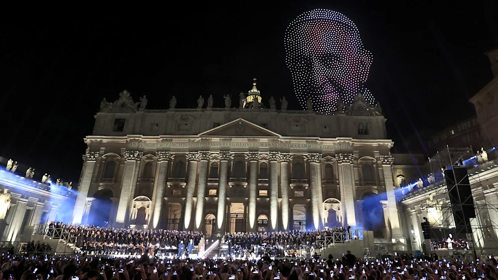 Op 11 september dan, vond de derde GRUWEL plaats in het Vaticaan. Er werd dan een concert gegeven op het Sint-Pietersplein, met als titel “Grace for the World”, in het teken van “menselijke broederschap”, waarbij met drones woorden en figuren werden getoond boven de Sint-Pietersbasiliek, waaronder een enorm hoofd van Bergoglio. Tal van vedetten kwamen er optreden. Het evenement werd onder meer gelivestreamd op Disney+. De drones werden geleverd door Kimbal Musk, de broer van Elon Musk.